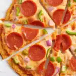 Bake on parchment paper. Nothing sticks, crust gets golden. Bake first, add toppings second, then bake again. Don’t skip this double-bake step or the crust just isn’t the same.